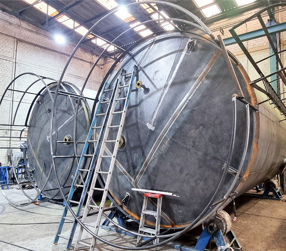 Fabricación, traslado y habilitación. Industria: Química. Fabricación de tanque de acero al carbón con recubrimiento especial interior y exterior, cuenta con escalera marina y barandales de seguridad, trasladado y habilitado en instalaciones del cliente.